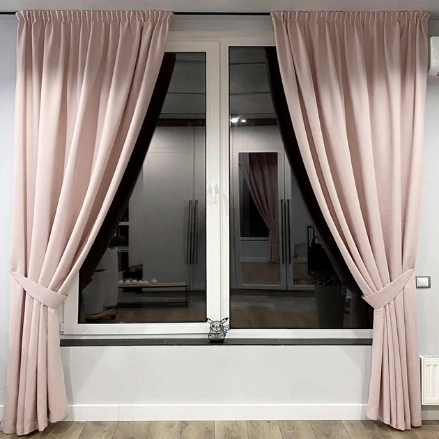 Комплект штори на тасьмі 2 шт. з підхватами 320х250 см мікровелюр Рожево-пудровий