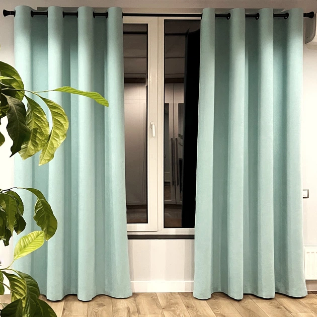 Комплект штори на чорних люверсах 2 шт 385х250 см мікровелюр Світло-бірюзовий