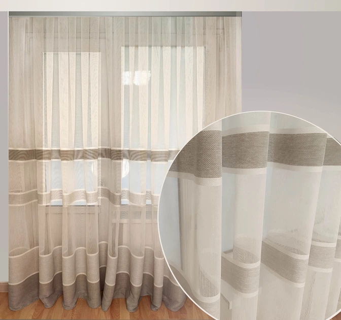 Тюль Декор-Ін льон зі смужкою Флорида Бежевий/Молочний 500х260 (ROZ6400054298)