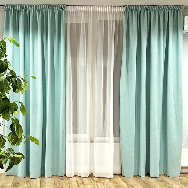 Комплект штори на тасьмі 2 шт 220х250 мікровелюр Світло-бірюзовий, тюль вуаль 500х250 Білий