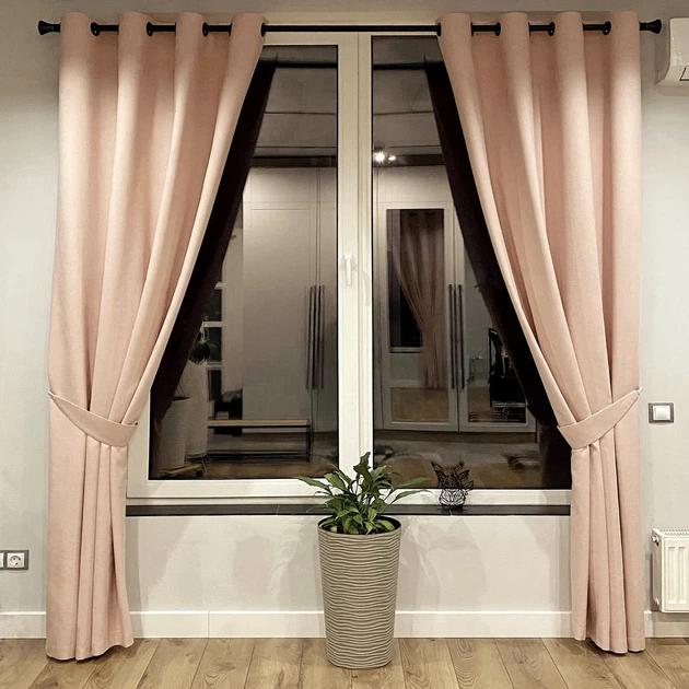 Комплект штори на чорних люверсах 2 шт з підхватами 385х250 см мікровелюр Рожево-пудровий