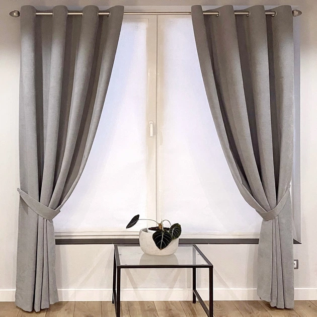 Комплект штори на чорних люверсах 2 шт з підхватами 385х250 см мікровелюр Сірий