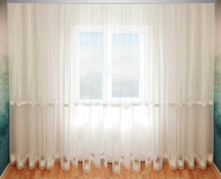 Комплект штори на тасьмі 2 шт 250х250 мікровелюр Світло-бірюзовий, тюль вуаль 750х250 Білий