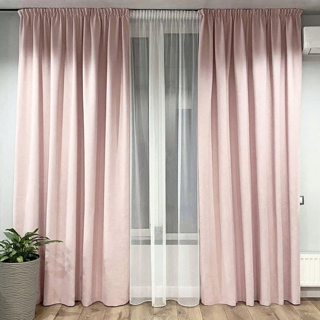 Комплект штори на тасьмі 2 шт з підхватами 280х250 см мікровелюр Світло-рожевий, вуаль 600 см Білий
