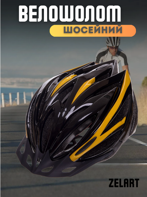 Велошлем шосейний з механізмом регулювання Zelart SK-5612 (EPS, PE, р-р 55-61, 12 отворів, Чорно-жовтий)