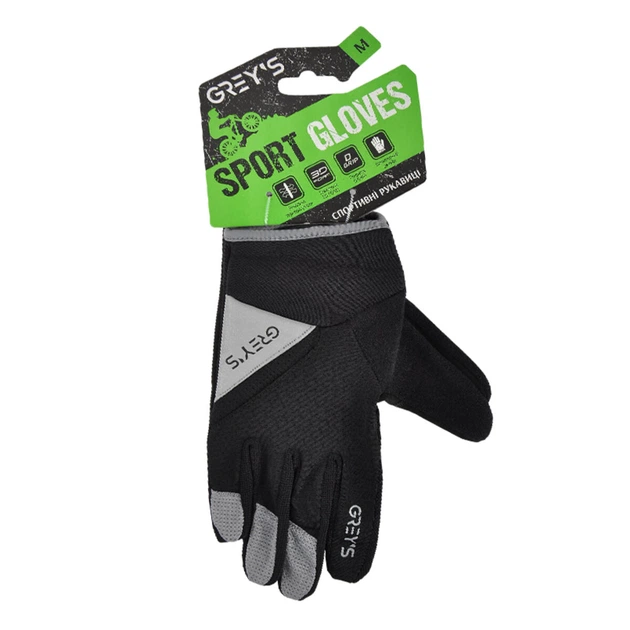 Велоперчатки спортивні захисні зимові Grey's з пальцями та гелевими вставками, чорні М GR18412 TRGR18412