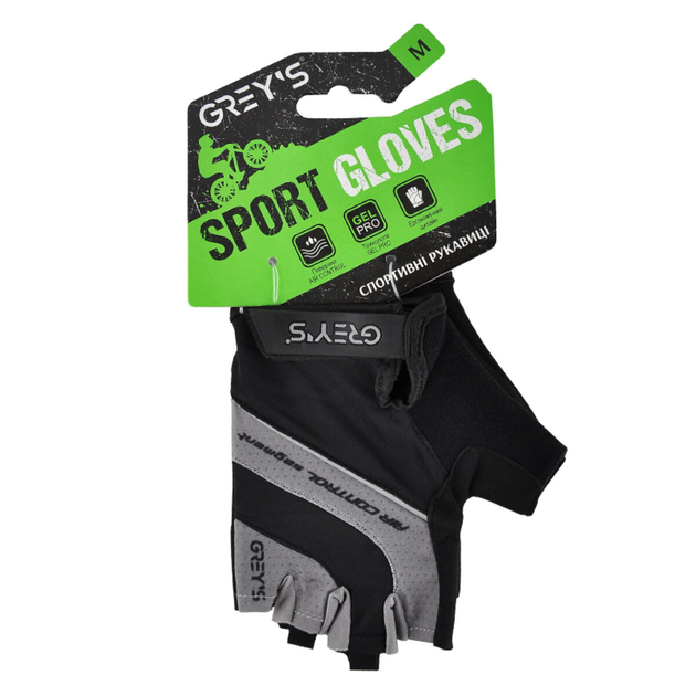 Велорукавиці Grey's з короткими пальцями та гелевими вставками, чорно-сірі М GR18352