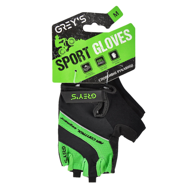 Велорукавиці Grey's з короткими пальцями та гелевими вставками, чорно-зелені М GR18322