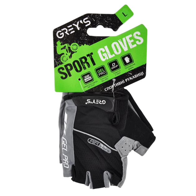 Велоперчатки спортивні захисні Grey's з короткими пальцями та гелевими вставками, чорно-сірі L (L-IDON33S)