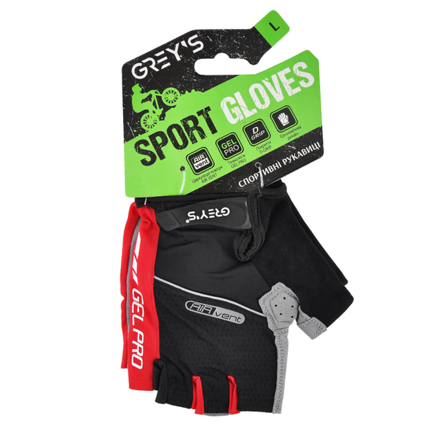 Велоперчатки спортивні захисні Grey's з короткими пальцями та гелевими вставками, чорно-червоні L (L-IDON33S)