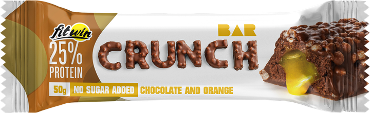 Батончик протеїновий Crunch Bar FitWin No Sugar Added 25 білку Шоу Бокс 12 штук без цукру зі смаком Шоколад та Апельсин