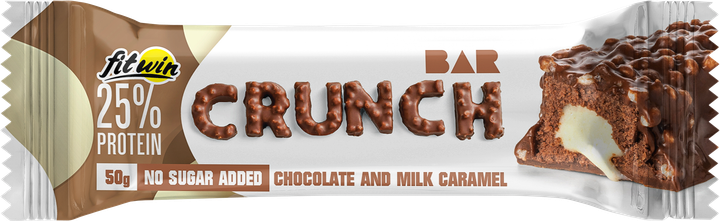 Батончик протеїновий Crunch Bar FitWin No Sugar Added 25 білку Шоу Бокс 12 штук без цукру зі смаком Шоколад та Молочна Карам