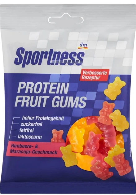 Протеїновий мармелад Sportness Protein Fruit Gums зі смаком малини та маракуї 90 г