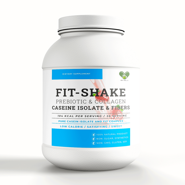Білковий коктейль з клітковиною пребіотиками 1.2 кг з л-карнітином та колагеном Envie Lab для схуднення FitShake полуниця