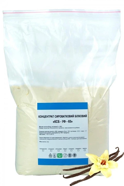 Протеїн концентрат сироваткового білка 65 Гадяч 1 кг у порошку зі смаком Ванілі ((33-126-KSB65-vR)
