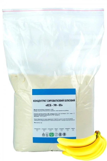 Протеїн концентрат сироваткового білка 65 Гадяч 1 кг у порошку зі смаком Банана (33-126-KSB65-bR)