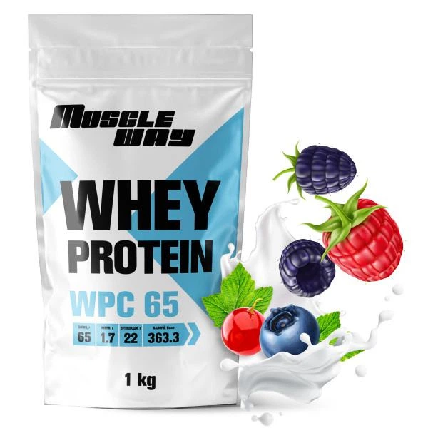 Протеїн концентрат сироваткового білка 65 MuscleWay 1 кг 22 порції у порошку Лісові ягоди (33-126-KSB65-MW/9)