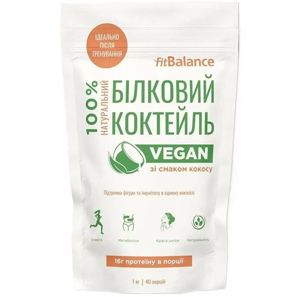 Протеїн FitBalance 100 Натуральний Білковий Коктейль Vegan 1000 g /40 порцій/ Кокос