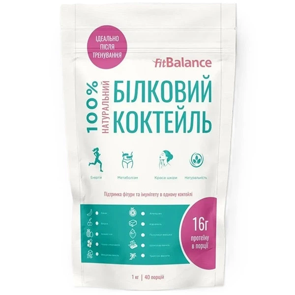Протеїн FitBalance 100 Натуральний Білковий Коктейль 1000 g /40 порцій/ Полуниця