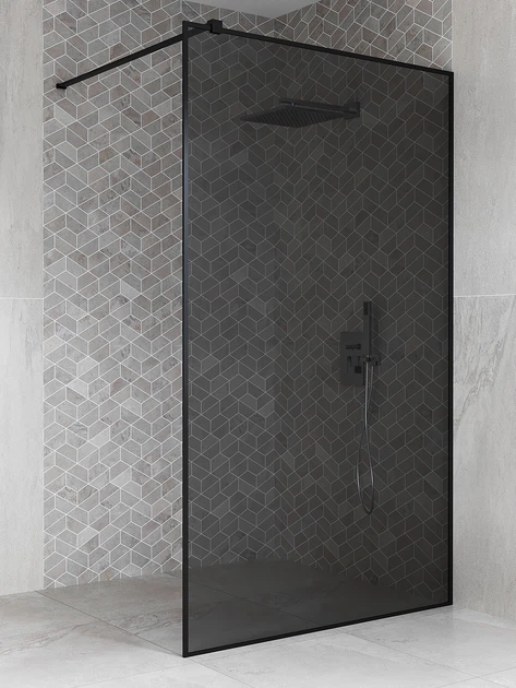 Скляна душова перегородка 700 х 2000 мм Angie скло Графіт в профілі чорного кольору по периметру для душової кабіни скло у в
