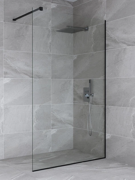 Скляна душова перегородка 1200 х 2000 мм прозора Angie скло Графіт для душової кабіни скло у ванну перегородка душова скло в