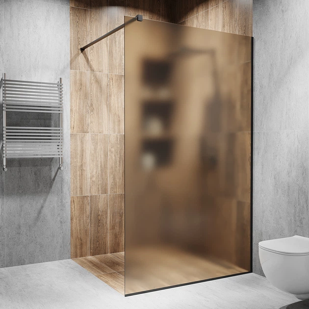 Скляна душова перегородка Alfa-Glass 2000х1200мм скло бронза матове колір фурнітури Black - Чорна матова (model-A.189)