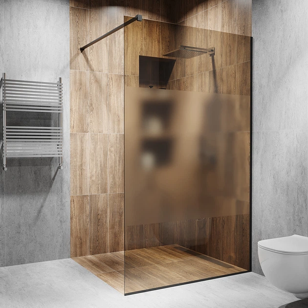 Скляна душова перегородка Alfa-Glass 2000х700мм скло бронза матове колір фурнітури Black - Чорна матова (model-A.184)