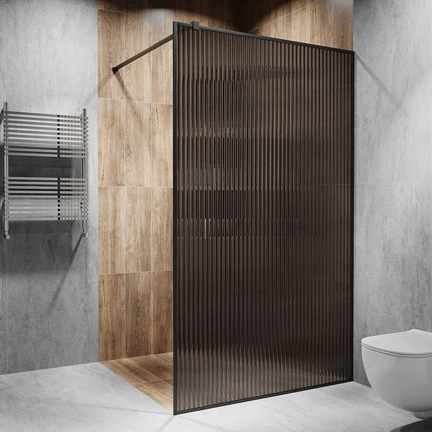 Флутс душова перегородка Alfa-Glass 2000х1000мм скло бронза колір фурнітури Black - Чорна матова (Model-AF.67)