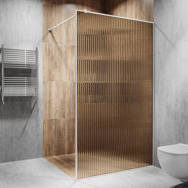 Флутс душова перегородка Alfa-Glass 2000х600мм скло бронза колір фурнітури white - Біла матова (Model-AF.84)