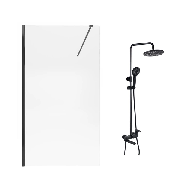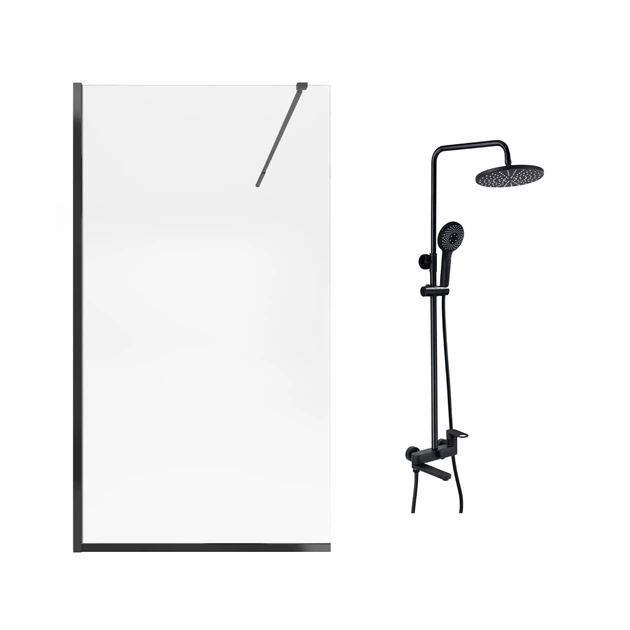 Qtap набір: Стіна Walk-in 100 BLM + Душова система на три споживача (STDBLM201C8 + QTJAY111BLM45549)