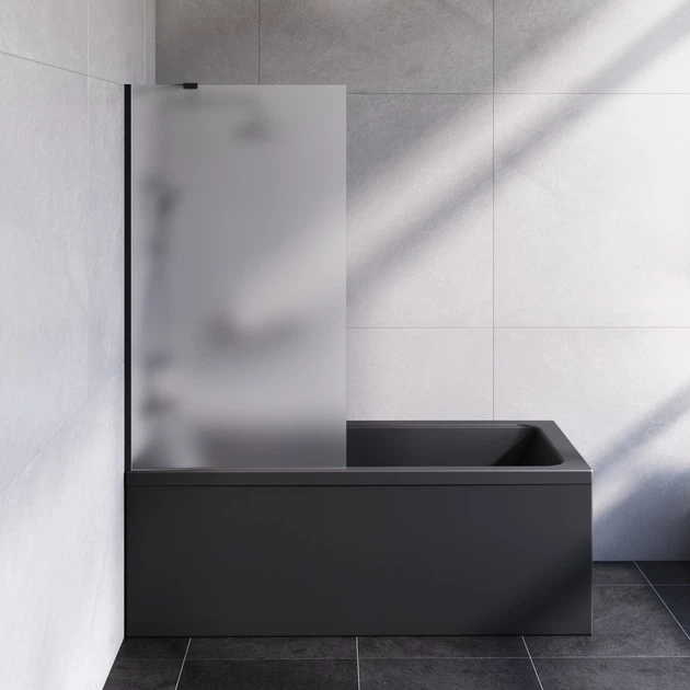 Шторка для ванної скло AM.PM Gem універсальна 140x80см матова 8мм профіль черный W90UBS-080-140BM
