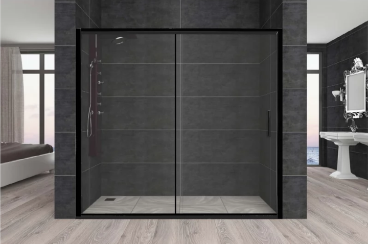Душові двері Aquanil Carmen 170190 см, прямокутна, прозрачна, чорний профіль