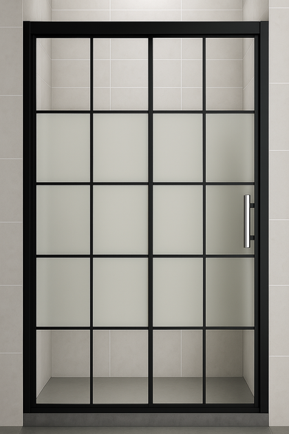 Душові двері Aquanil Carmen 140190 см, прямокутна, скло з декором клітка, чорний профіль