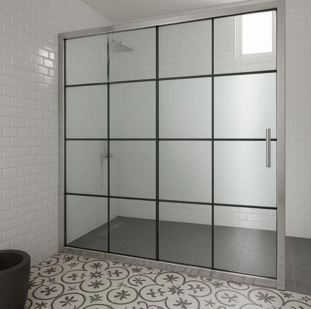 Душові двері Aquanil Carmen 140190 см, прямокутна, скло з декором клітка, хромований профіль