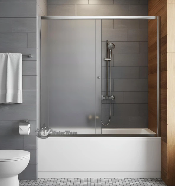 Скляна штора на ванну Ko&Po 170х140 см розсувна двосекційна матове загартоване скло