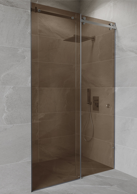 Двері для душу розсувні 115 х 200 см Cindy скляні кольору Бронза в нішу розсувна душова кабіна перегородка для душа розсувні