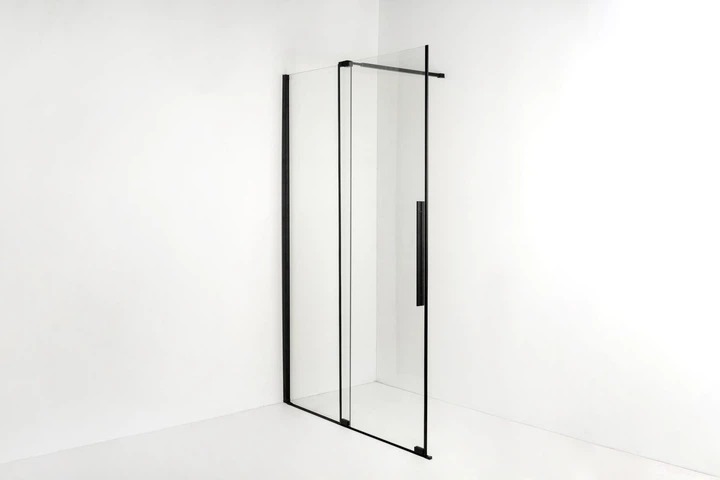 Душова перегородка 1900х2000 мм VIZUAL GLASS SLIDE LOFT Розсувна Лівостороння з чорною фурнітурою
