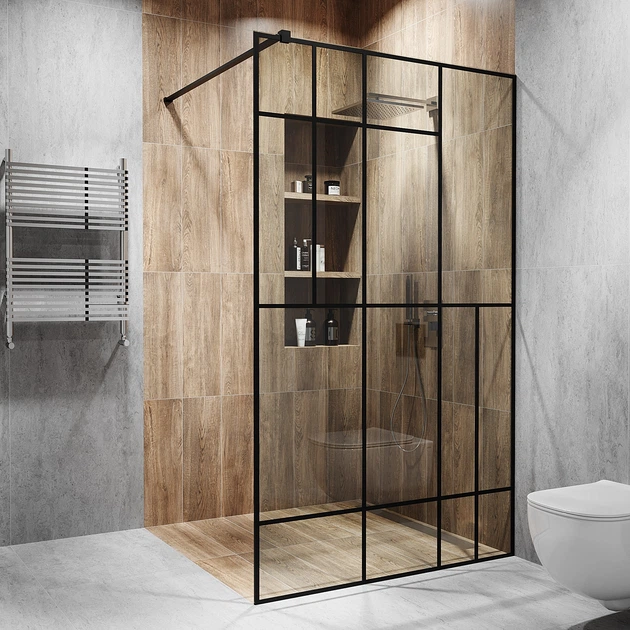 Скляна душова перегородка лофт (LOFT) Alfa-Glass лофт (LOFT) 2000х900мм скло графіт колір фурнітури Black - Чорна матова (Mo