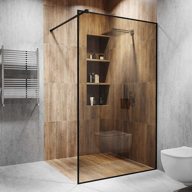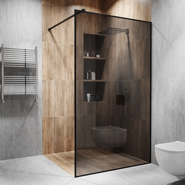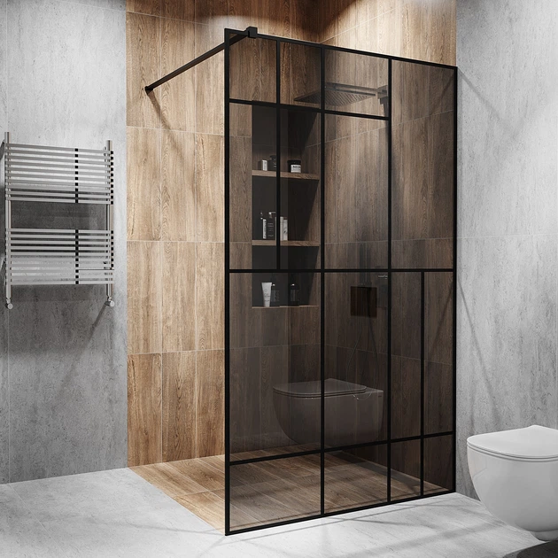 Скляна душова перегородка лофт (LOFT) Alfa-Glass лофт (LOFT) 2000х700мм скло бронза колір фурнітури Black - Чорна матова (Mo