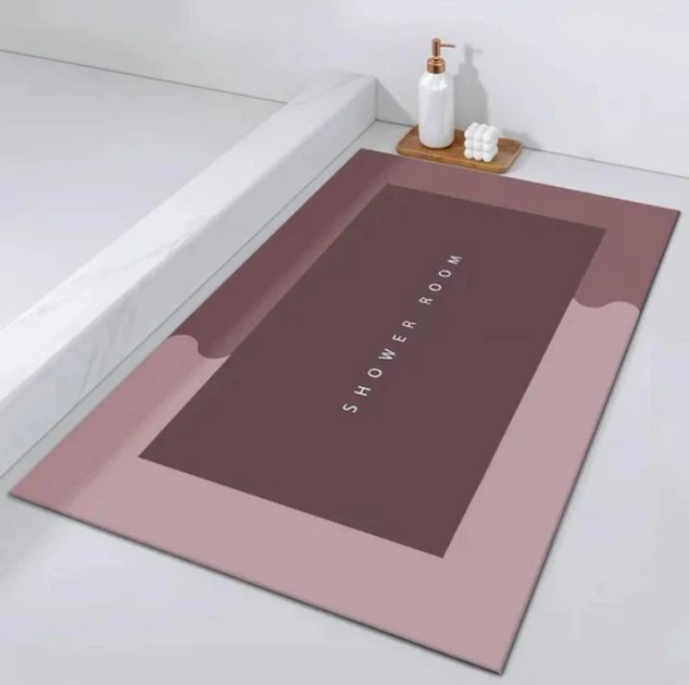 Килимок для ванної кімнати вологопоглинаючий швидковисихаючий ковзкий 60х40см Shower Room Квадратний Рожевий