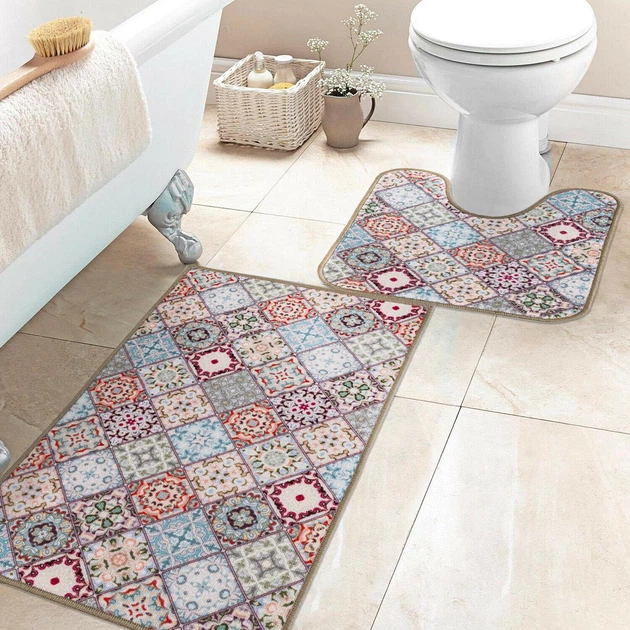 Набір килимків для ванної кімнати та туалету комплект коврик у ванну кімнату килимок в туалет бежевий 57х90 і 57х60 Print 20
