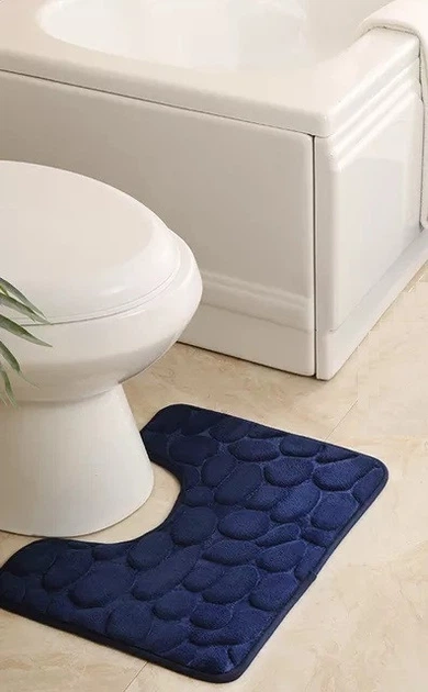 Килимок для ванної та туалету YourFind Stonе стильний, антиковзкий, водопоглинаючий 50*40 см Синій