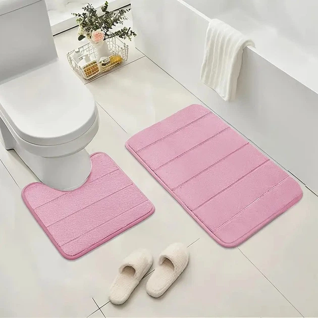Набір 2 килимків для ванної та туалету 40х60 + 50х40 см STRIPES з Ефектом пам'яті Рожевий у смужку (7802640)