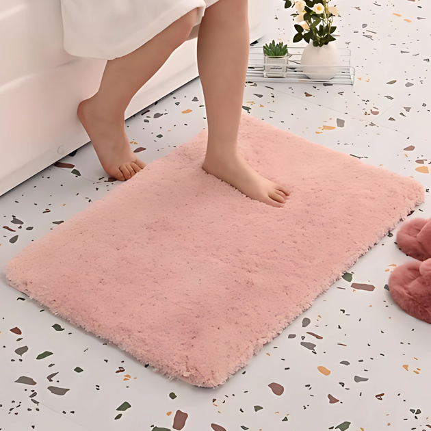 Килимок для ванної кімнати та душу килимок для ніг у ванну, мікрофібра, антиковзаючий 40х60 см, однотонний рожевий YFL1021pi