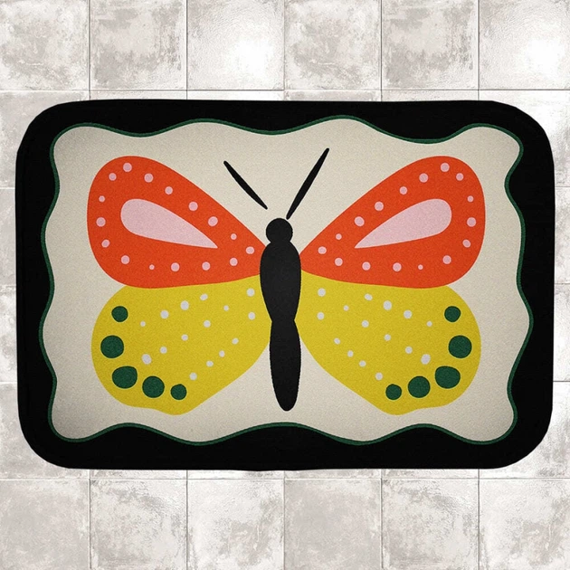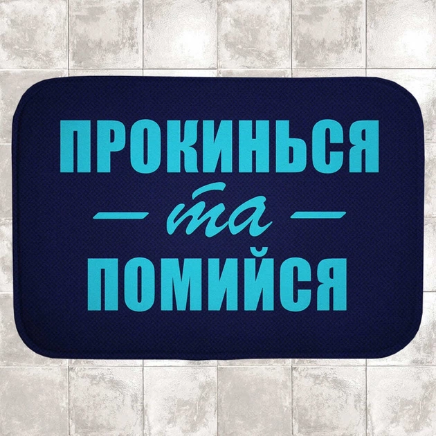 Килимок у ванну кімнату з написом "Прокинься і умийся"
