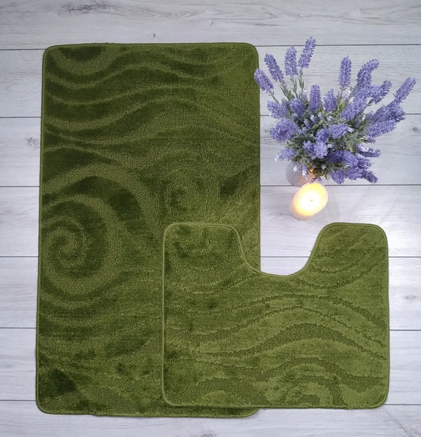 Набір килимків у ванну кімнату з килимком для туалету Banyolin Silver 60см*1 м. + 60см*50см темно-зелений