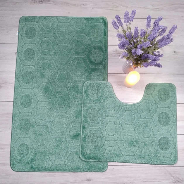 Набір килимків у ванну кімнату з килимком для туалету Banyolin Silver 60см*1 м. + 60см*50см м'ята Сота