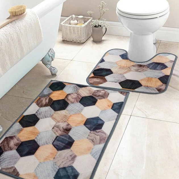 Набір килимків у ванну кімнату та туалет Print 216-2 50х80 та 57х60 см Комплект ковриків для ванної кімнати та туалету Сірий