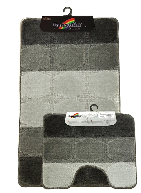 Набір килимків у ванну кімнату у комплекті з килимком для туалету Banyolin Silver Сірий 0.6х1 м. + 0.6х0.5 м. Grey GLD 01