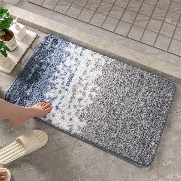 Килимок для ванної кімнати та душу килимок для ніг у ванну, мікрофібра, антиковзаючий 51х76 см, градієнт синій YFL1039blue